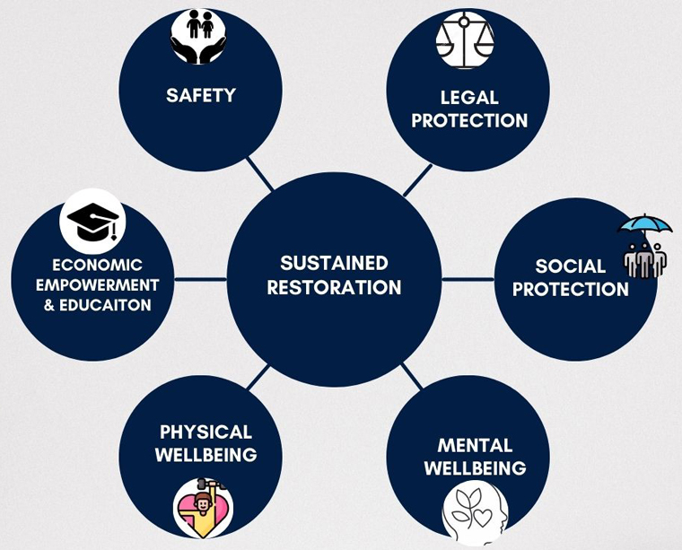 Every child is unique and comes from a specific vulnerability. The cases cannot be generalized. We follow a scientific approach to manage the case of every child. The vulnerability is identified on the basis of following six criteria (adopted from IJM Model of Assessment of Survivors Outcome). Once the specific vulnerability is identified, our social workers make care plans for each child. This amplifies the outcome of case management towards sustained restoration – meaning a child is restored in family and community with least vulnerability to revictimization.